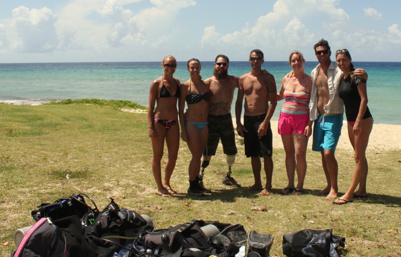 The following afternoon, the rest of the gang began to trickle in. Every time someone new arrived, the party changed for the better. New relationships formed, new friendships blossomed, and more and more fun ensued. We spent most of our time in the pool or on the beach just relaxing and spending time together. Two of my biggest concerns going into this were the weather and the other guests at the hotel. Well, the weather was about as perfect as can be! Sunny, warm, and beautiful. As if that wasn't lucky enough, there were seemingly no other guests at the hotel! You'd occasionally see someone else wandering around but for the most part, our party took over the entire property - and it was AWESOME! It was like our own private resort. There was a full service dive shop on site that we of course took advantage of. We had quite a few divers on this trip so SCUBA was in full effect! Being able to walk 20 feet from the pool, get some tanks, walk down to the beach and into the water was just a diver's dream. And to top it all off, having our whole gang wading in the ocean to send us off and welcome us back in from our dives, cold beers in hand, just added a whole new level of fun to the diving experience. We all laughed about that fact that most of the time when you go on vacation, the last thing you want to do is spend your entire trip at your hotel. But in this case, it turned out to be just the opposite. Here we had this gorgeous resort complete with delicious food and plenty of alcohol (PAIN KILLERS!), a dive shop, a pool, private beach, and all of our favorite people. There was simply no need to leave! We did do a couple dives from a spot down the road which was just gorgeous - one of the most amazing dives I've ever done. All of the diving was top notch - sharks, rays, turtles, eel, copious amounts of fluorescent, tropical fish - combined with the tropical, lukewarm water; it was just PERFECT.